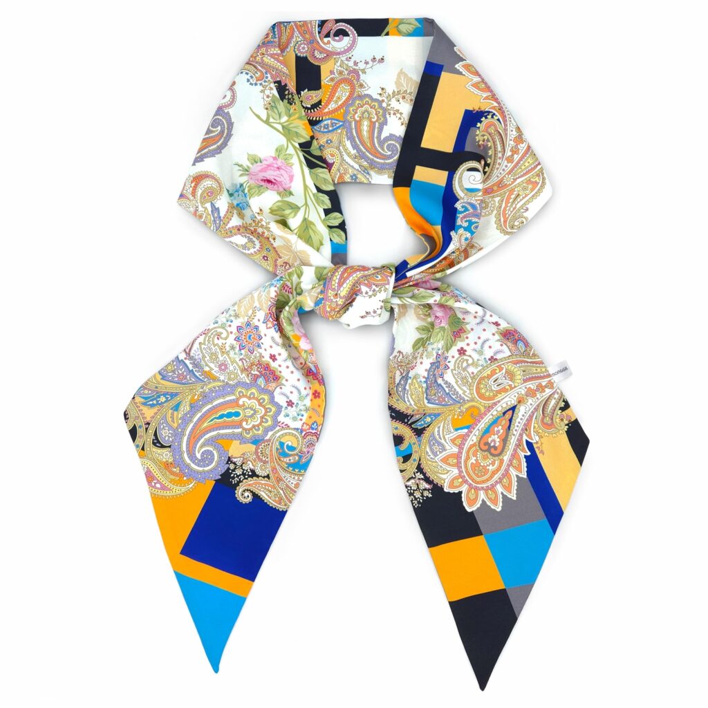 • Tied around your neck for a colorful accent
